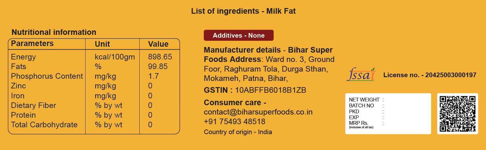 Perfect for everyday cooking, spreading on rotis, adding to dal-rice, sweets, or using for Ayurvedic wellness practices, Bihar Super Foods Ghee guarantees premium purity and unmatched traditional quality.
